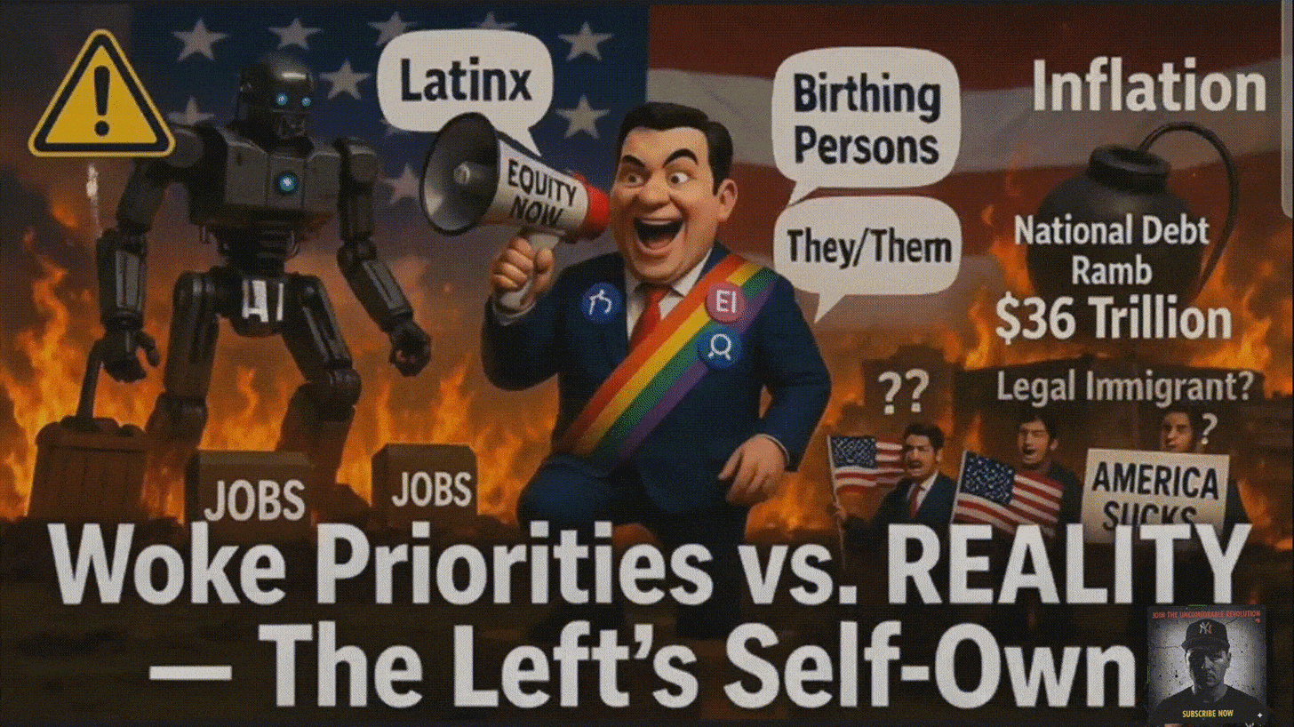 Listen up, self-appointed high priests of the pronoun patrol and equity enforcement brigades — this is your friendly neighborhood truth serum, served straight, no chaser. We’re talking about the sacred cows of the modern left. Those shiny distractions that have hijacked the conversation while the house is on fire with skyrocketing prices, looming unemployment spikes, a ballooning national debt, projected crime surges, eroding American influence abroad, and a tech revolution reshaping everything we know.