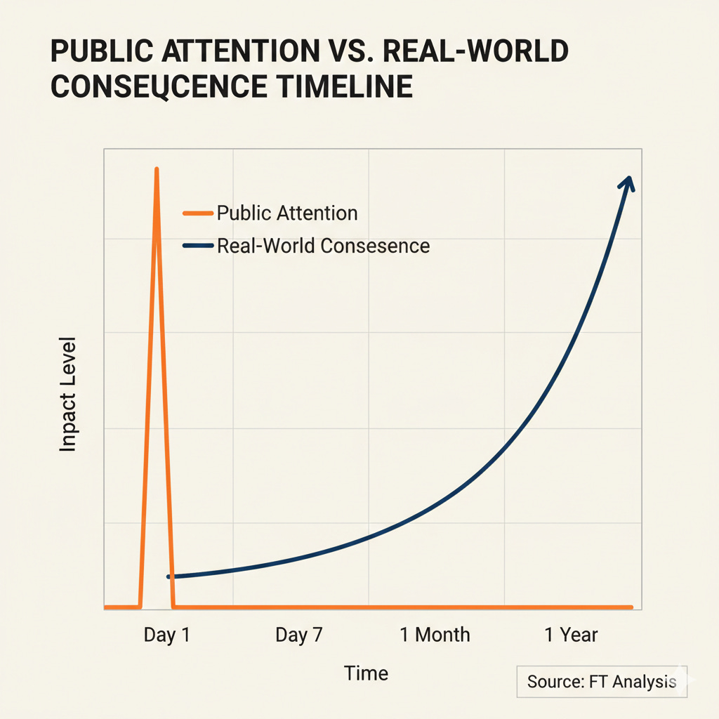 Seven-day attention cycles collide with multi-year governance processes.