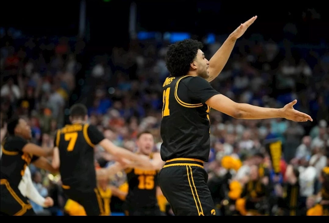 Welcome to March Madness 2026. Not just the tournament. The whole goddamn thing. The season of upsets, blowouts, and first-round exits for empires that thought they were untouchable. Florida, defending champs, top seed, golden boys on 89% of every bracket in America, got smoked by Iowa and vanished from the draw like a policy promise after midterms. Alvaro Folgueiras hit a 3-pointer with 4.5 seconds left. First No. 1 seed eliminated. Gone. Sound familiar