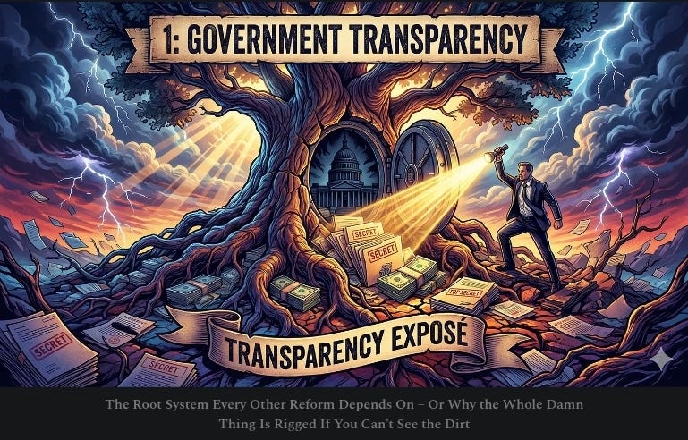 Force every dollar and contract into daylight. Lobbyists whining? Good. Let them sweat. Democracy doesn’t work in the dark. Difficulty: 4/5 | Timeline: 12–24 months